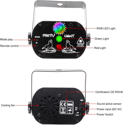 DJ DISCO STAGE PARTY LIGHTS LED SOUND ACTIVATED LASER LIGHT RGB FLASH STROBE PROJECTOR WITH REMOTE CONTROL